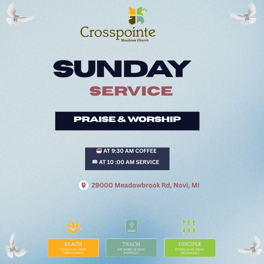 Join us every Sunday for worship and fellowship at Crosspointe Meadows Church.